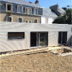 Mise en oeuvre au moyen d'une grue par dessus les constructions existantes.